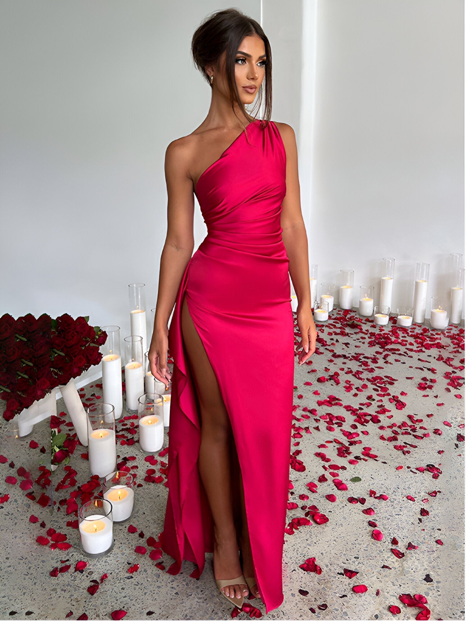 Lockande hög slits: Den eleganta slitsen ger klänningen en elegant touch, perfekt för de speciella tillfällen där du vill göra intryck.